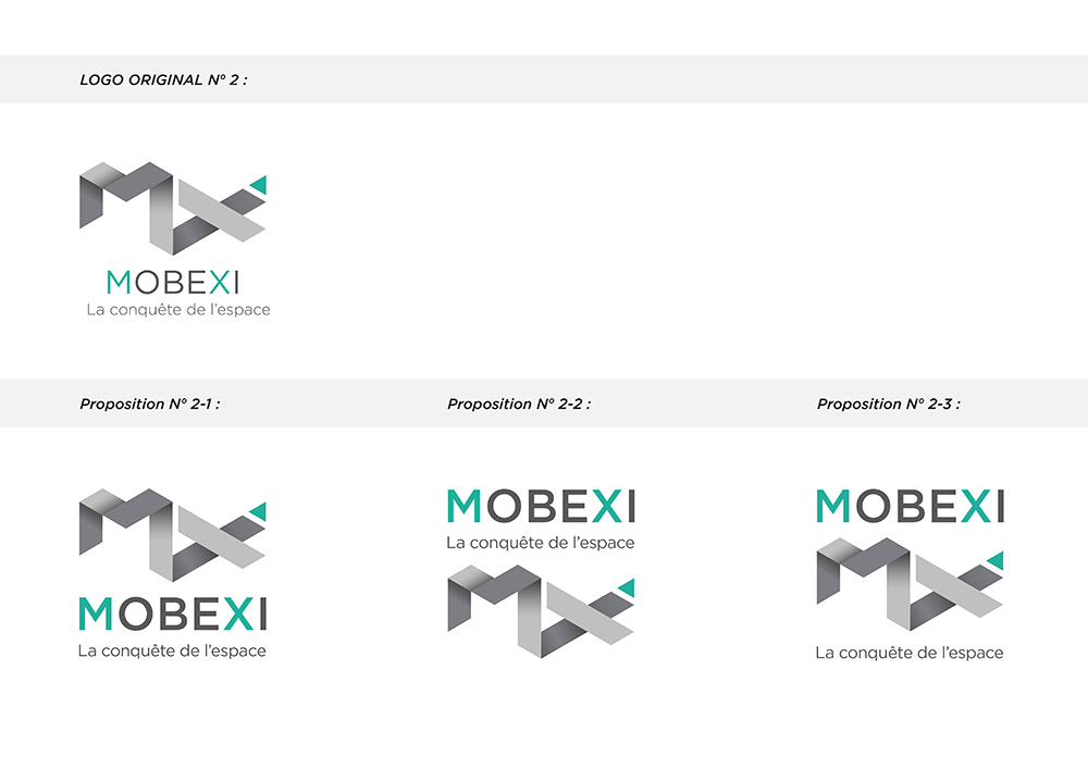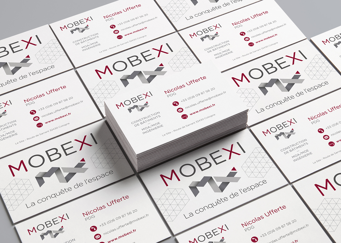 Réalisation d’un logo et d’une carte de visite pour Mobexi, une entreprise de construction de bâtiments industriels.