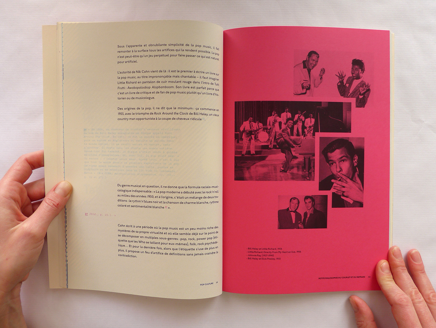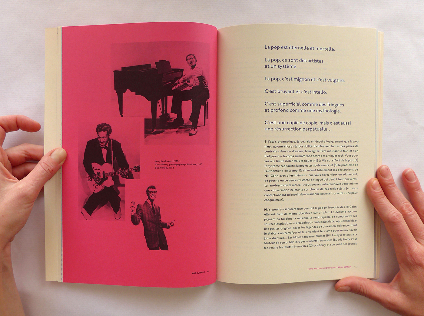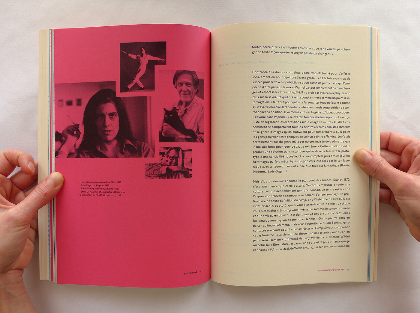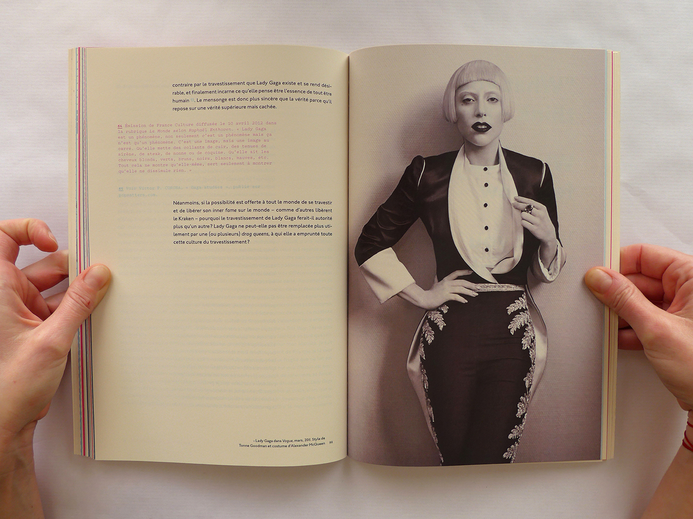 Pour cette édition sur les thèmes de la Pop Culture et de la musique, j’ai repris le format populaire du magazine. Ensuite, j’ai utilisé la typographie Johnston (1916), icône du métro londonien, à la fois dans l’édition et la page web associée. Enfin, la lecture du livre est rythmée par des pages colorées et des photos noir et blanc en pleine page qui ouvrent et ferment chaque chapitre. Ainsi que des notes décalées et colorées, en Pitch (police de caractère).